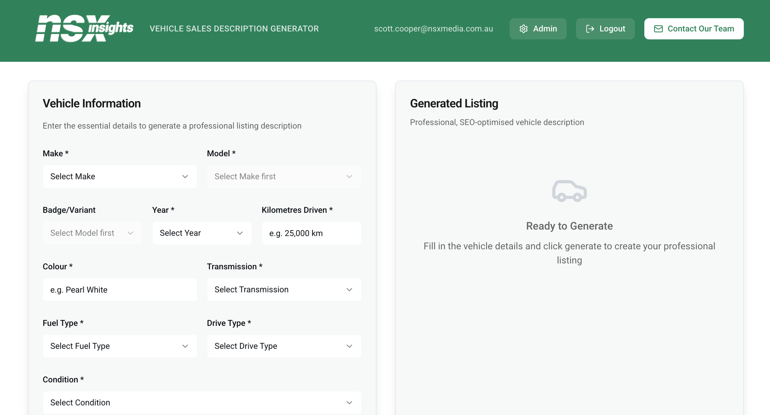 Writing vehicle listings takes time, and when it’s rushed, inconsistent or left blank, it costs you enquiries and days on market.